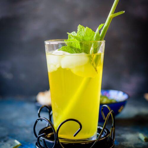 Iced lemongrass tea with fresh mint and lime
