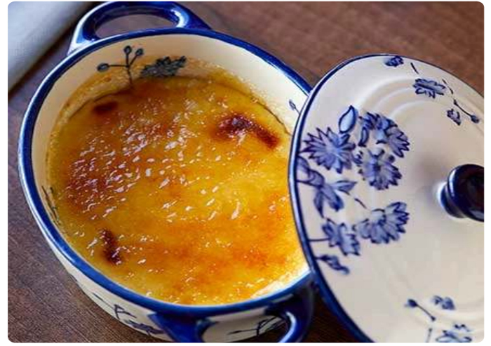 Bake in a water bath for 1–1 hr 15 mins until set with a slight wobble. Cool, chill for 3+ hours. Sprinkle with sugar and caramelise before serving.